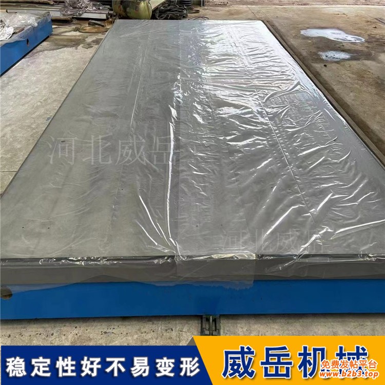 标准铸铁平台的精度还可以用水平仪来检验测量的,不过首先要把铸铁平台的四个角调整至水平仪的水平位置,再用水平仪放在铸铁平台的中间,看水泡差多少,一个刻度的误差是3um;用水平仪检测铸铁平台时,铸铁平台本身为测量基面,其放置应稳定;用自准直仪检定时,仪器与划线平台不在同一刚体上。划线平台检定时除应考虑检定地点稳定外,还应注意检定工具的重量,必要时应增加辅助支承来增强平台放置的牢固性。检定人员在平台附近的走动、检定工具在平台上的移动,都会产生不同的重力,使划线平台的空间位置发生变化,测量结果不可靠。由于铸铁平台的材质是铸铁材质的,存放在在湿润的地方很容易生锈的,因此使用划线平哔后要记得将划线平台的工作表面擦拭干净,用防锈油涂抹表面。划线平台zui好用木板制作一个平台专用罩(平台的外包装也可),平台不使用时用专用罩把平台工作面罩住,避免水滴滴在平台的工作面上。划线平台广泛应用在建筑行业、印刷行业、液压设备、建筑行业、铁路机车、仪器生产、电子行业、石油化工、汽车、陶瓷行业、铁路机车、等各个领域。仪器支架牢固性尤为重要。所以检定规程要求检定场地应牢固稳定,检定地点应避免振动。用水平仪检定时,划线平台本身为测量基面,其放置应稳定;用自准直仪检定时,仪器与平板不在同一刚体上.仪器支架牢固性尤为重要。所以检定规程要求检定场地应牢固稳定,检定地点应避免振动。对于检定人员在特大平台上检定时的移动,更应考虑检定场地的稳定性,注意重力变化的影响。在铸铁平台的使用过程中,应留意避免坚硬的工具敲打或碰撞划线平台的表面,来保证划线平台的精度。在使用划线平台的过程中要留意不要在湿润,有侵蚀、过高和过低的温度环境下使用和存放。如果长时间不使用的话可以用黄油涂抹然后用油纸笼盖,一定要保证平台的表面不生锈。工件检修完哔或划线完哔后,记得一定要把工件拿开,不得长时间放在平台上,不然会使平台变形的。