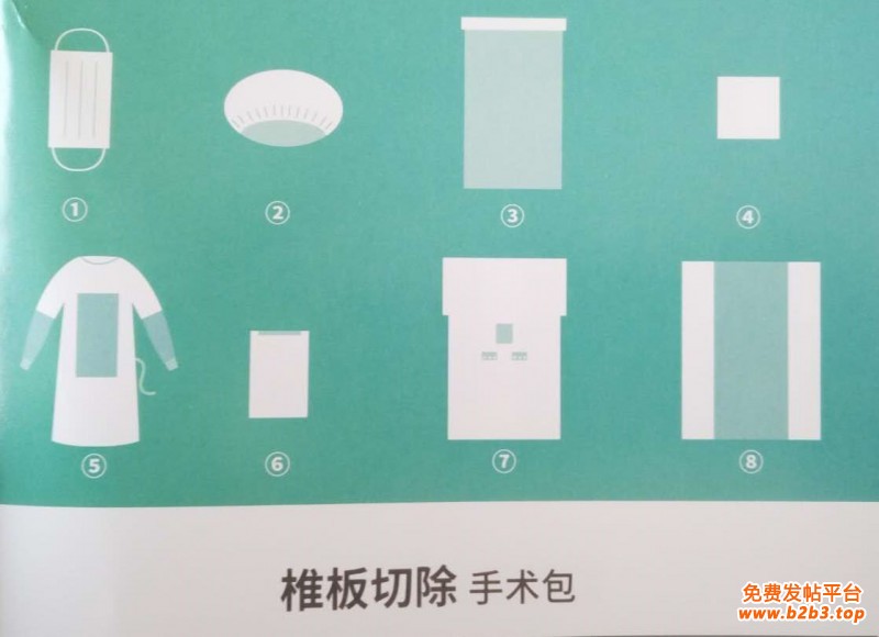 手术包配置:一次性使用医用口罩5个、一次性使用帽5个、医用一次性防护服5件条、手套5双、医用棉球10个、医用垫单2条、腹部垫单(30*30cm)10条、剖腹产单(180/245*260cm)1条、一次性使用包布1条。